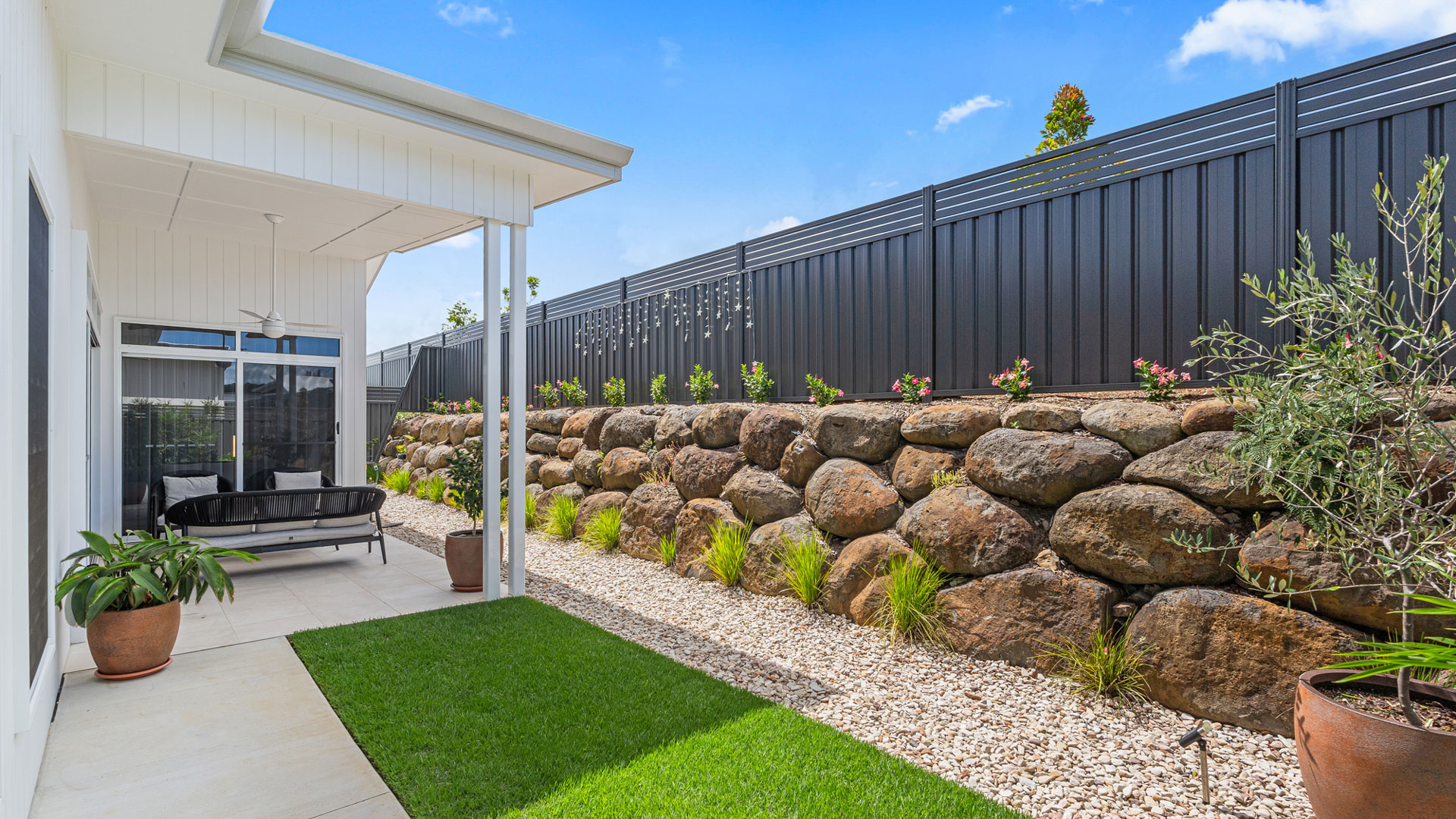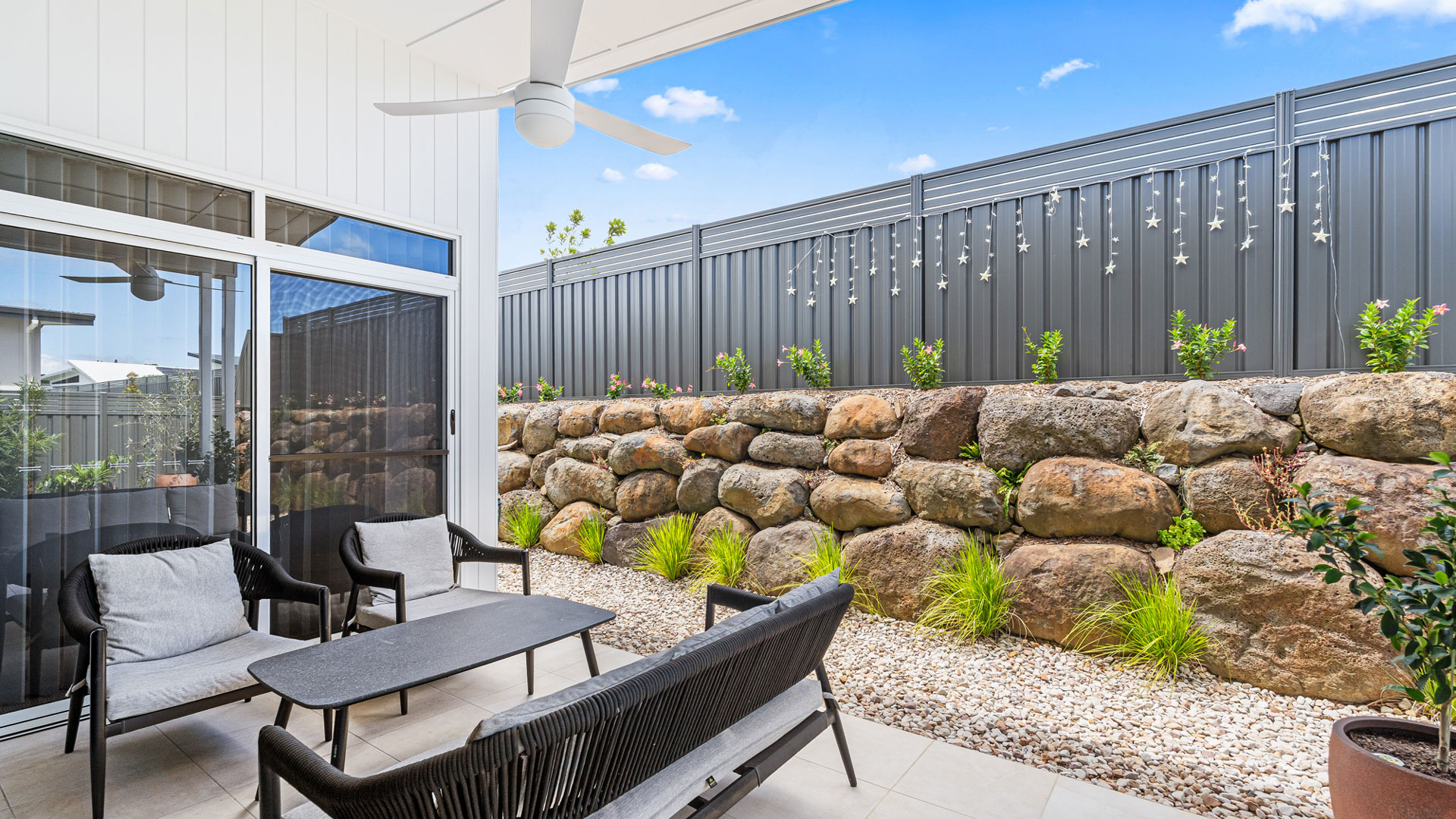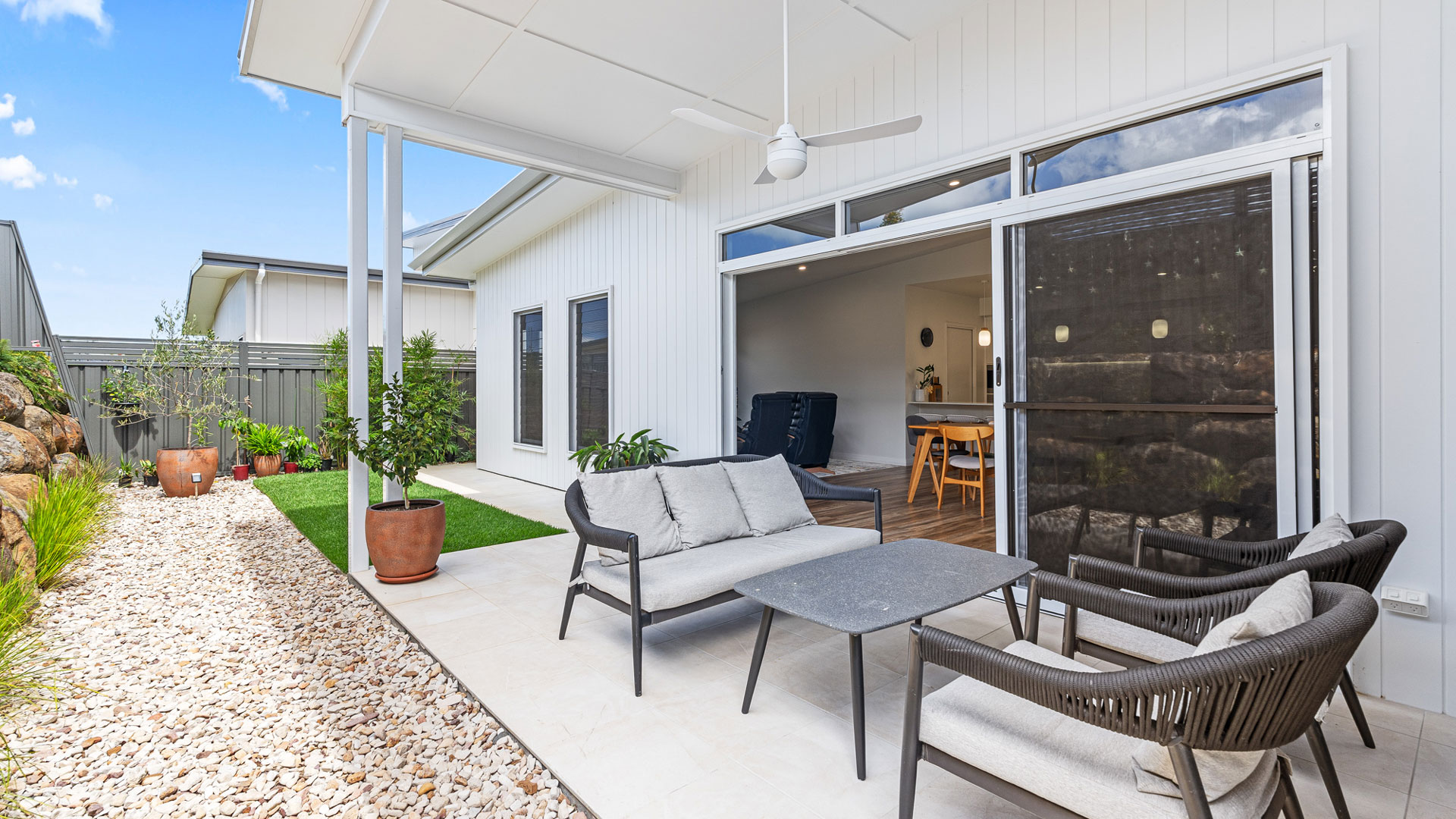 Remote garage door and tiled alfresco